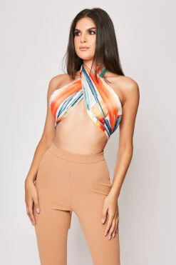 Add a pop of colour to your wardrobe with the Ambra! Featuring a pink watercolour print Satin material, long sleeve tie front crop top and high waisted shorts.