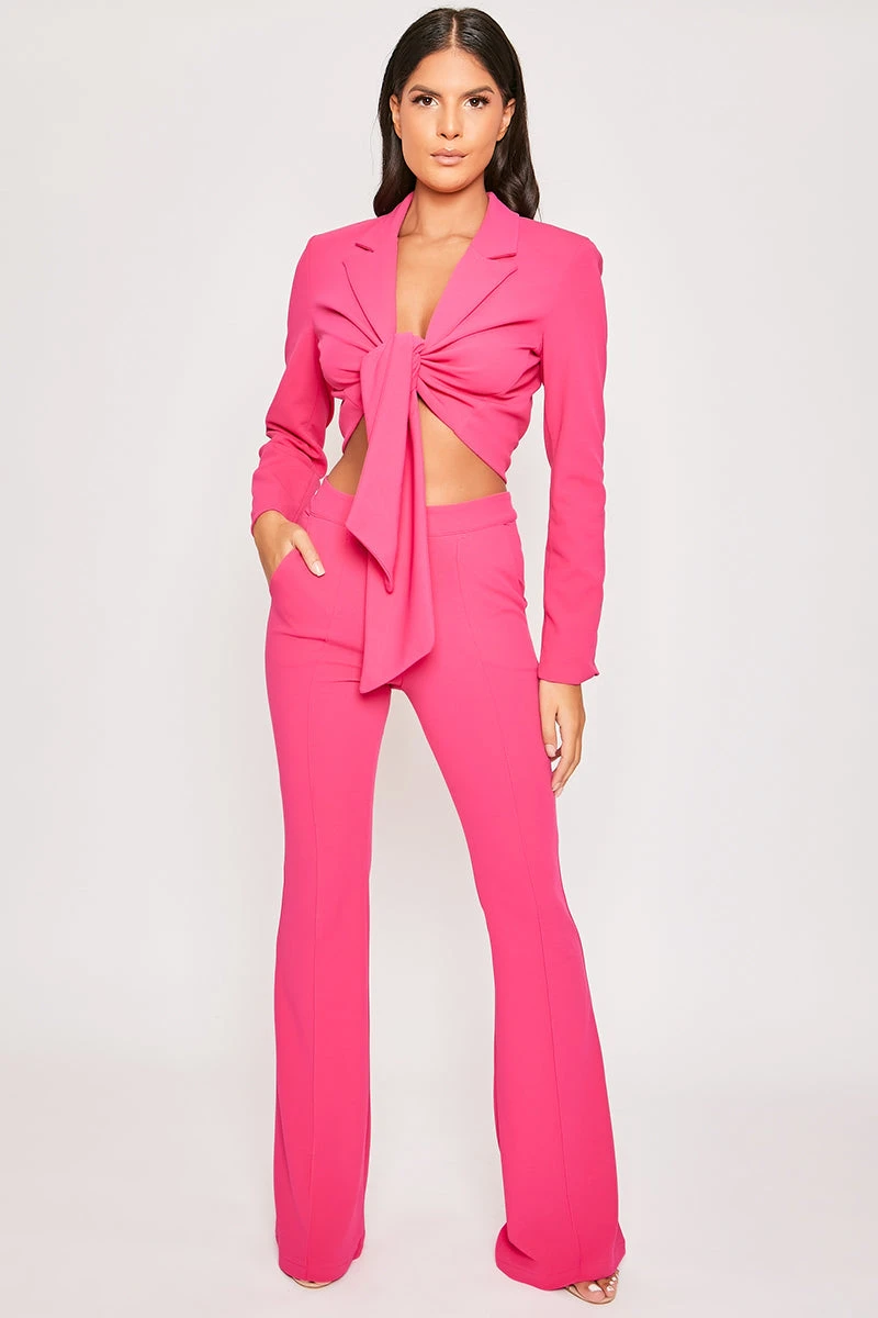 Up your fashion game and channel ultimate girl boss style vibes in the Blair tie front cropped blazer and bell bottom trousers!