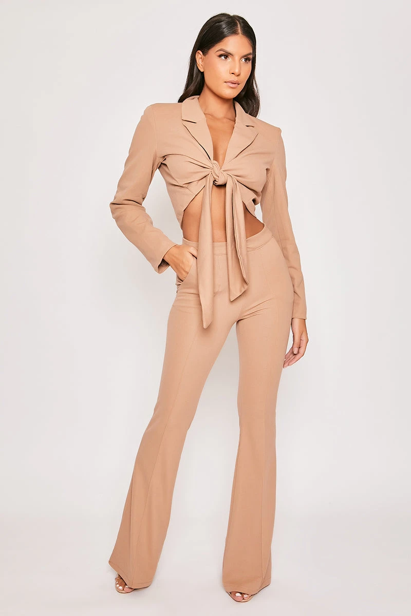 Up your fashion game and channel ultimate girl boss style vibes in the Blair tie front cropped blazer and bell bottom trousers!