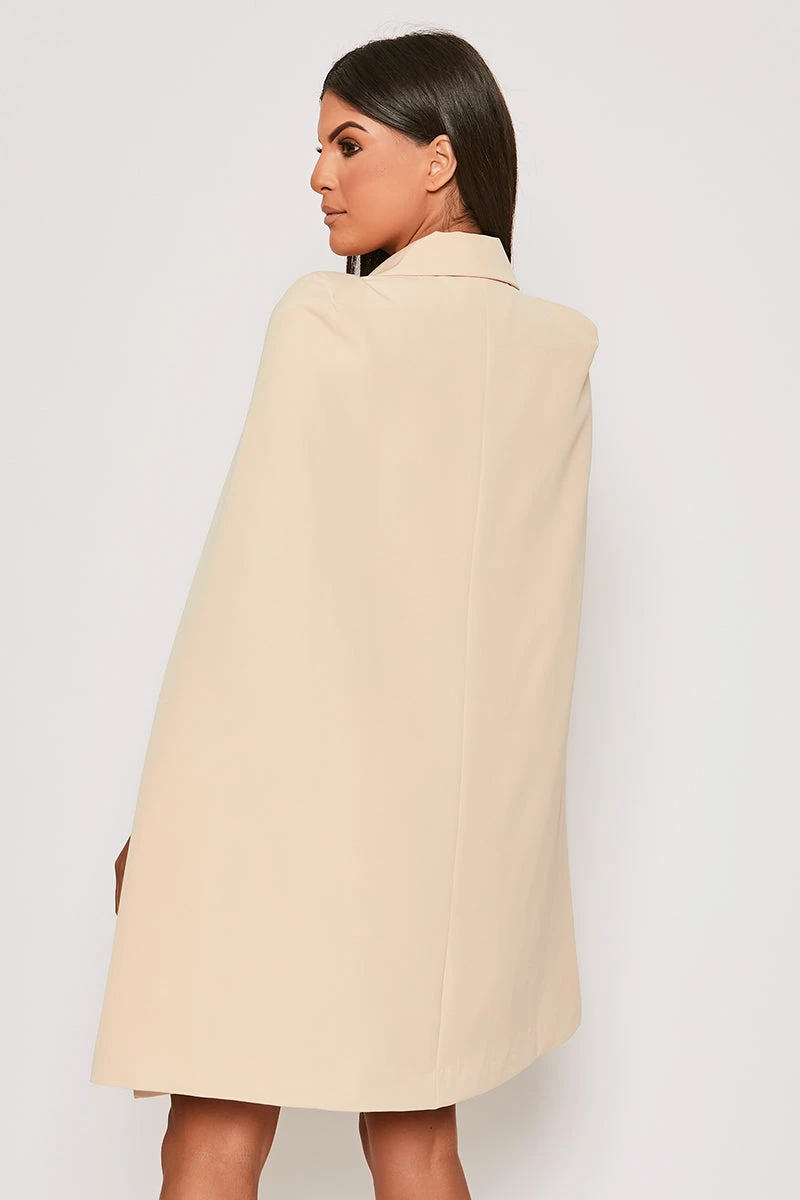 Brea – Nude Caped Belted Blazer Dress