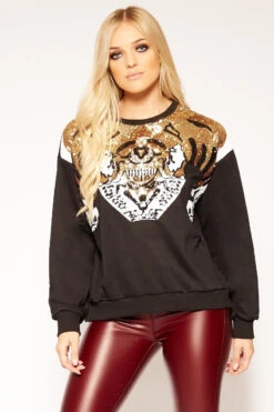 Be the first to review “Celise – Gold & White Sequin Black Jumper” Cancel reply