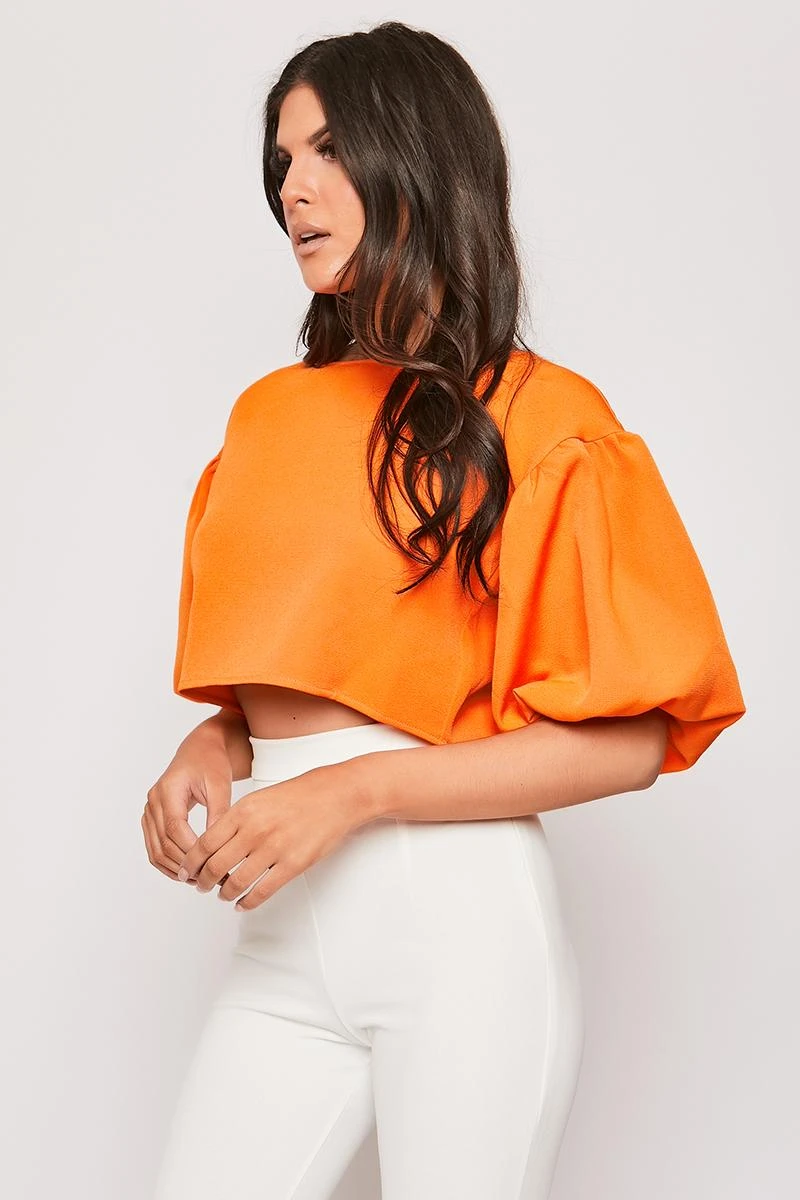Christina – Orange Puff Sleeve Top
