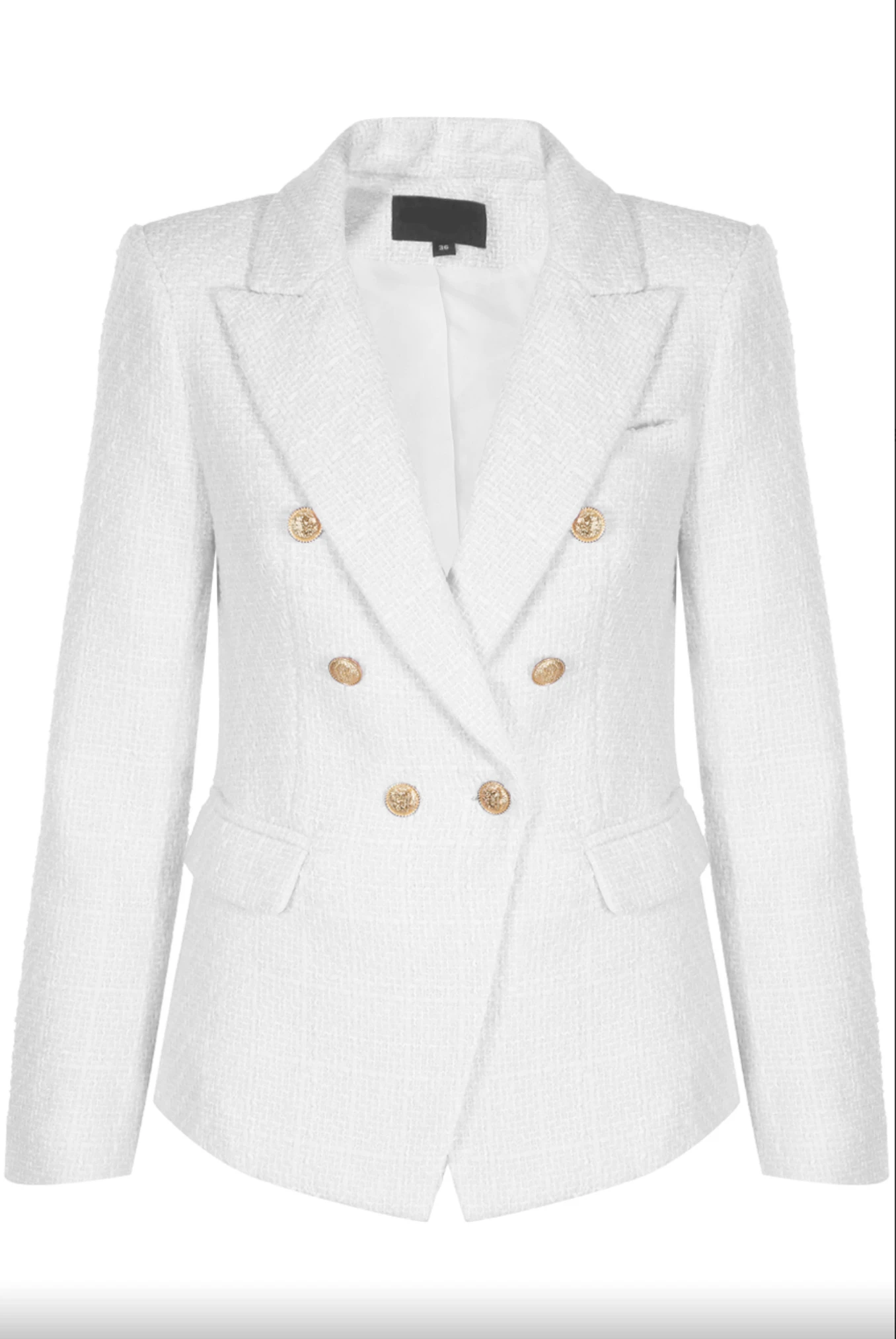 Love the premium thick texture and gold button detail. This pink blazer features a double breast styling, peak lapels & size flapped pockets. Claudette is perfect for dressing up that jeans and nice top or perfect for over one of our must have bandage dresses!