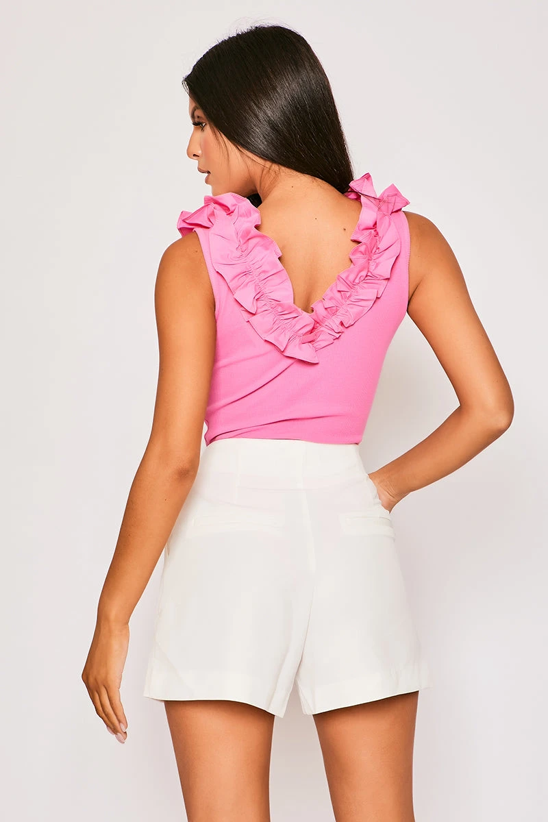 Jess – Pink Premium Ribbed Gold Button Trim Contrast Bodysuit