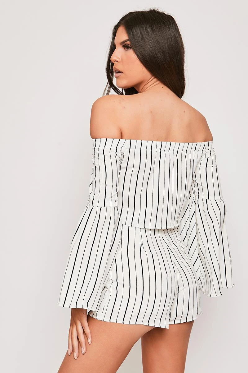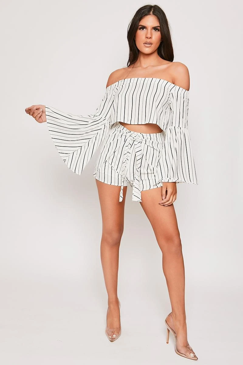 Harriet – White & Black Stripe Off The Shoulder Two Piece Set