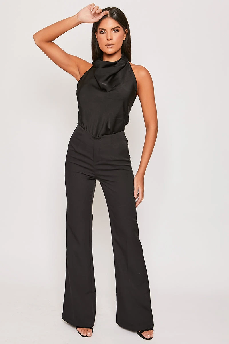 Imogen – Black Satin Cowl Neck Backless Halter Top