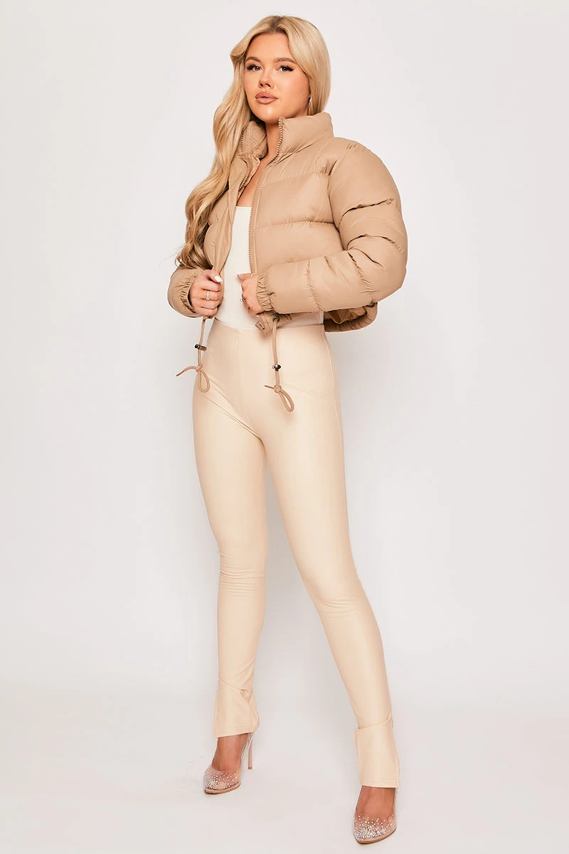 Elevate your weekend collection with these PU split hem bottoms. Featuring a cream PU material with an elasticated waistband and split hems, team them with a must have bodysuit & blazer finished with heels for a night out with the dolls.