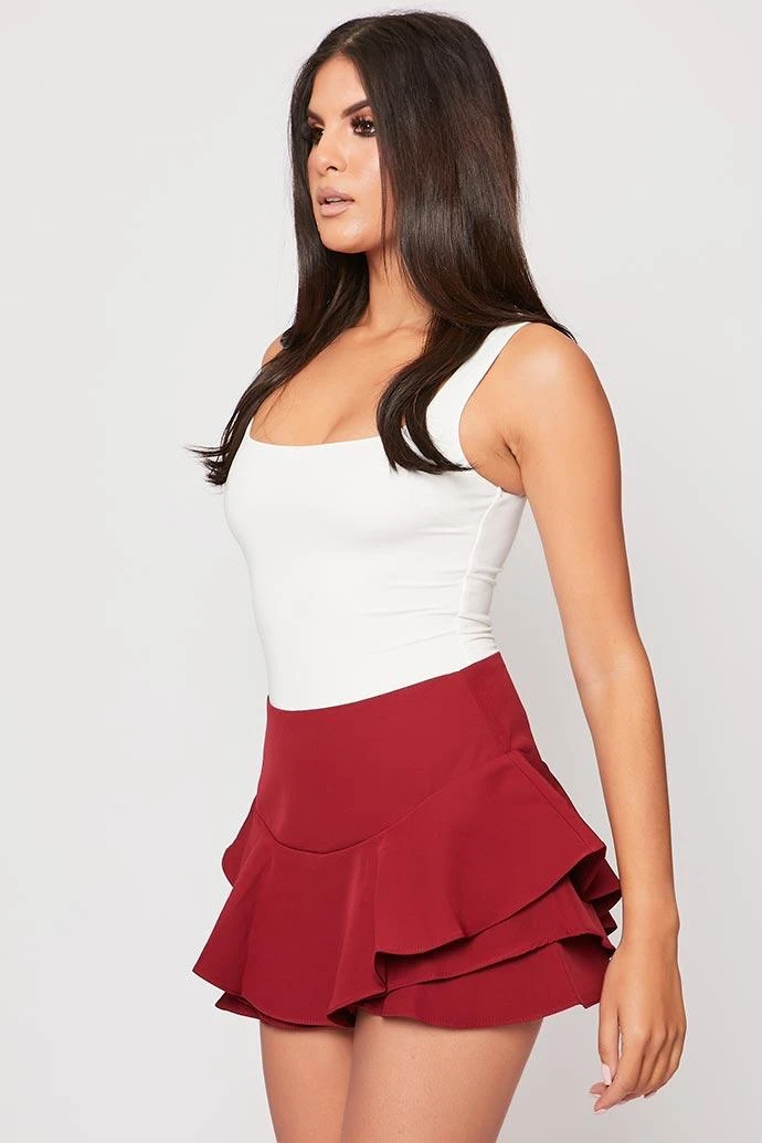 Lindi – Wine Ruffle Hem Shorts