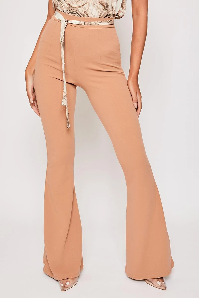 Add a warm nude to your wardrobe with these nude high waisted trousers.