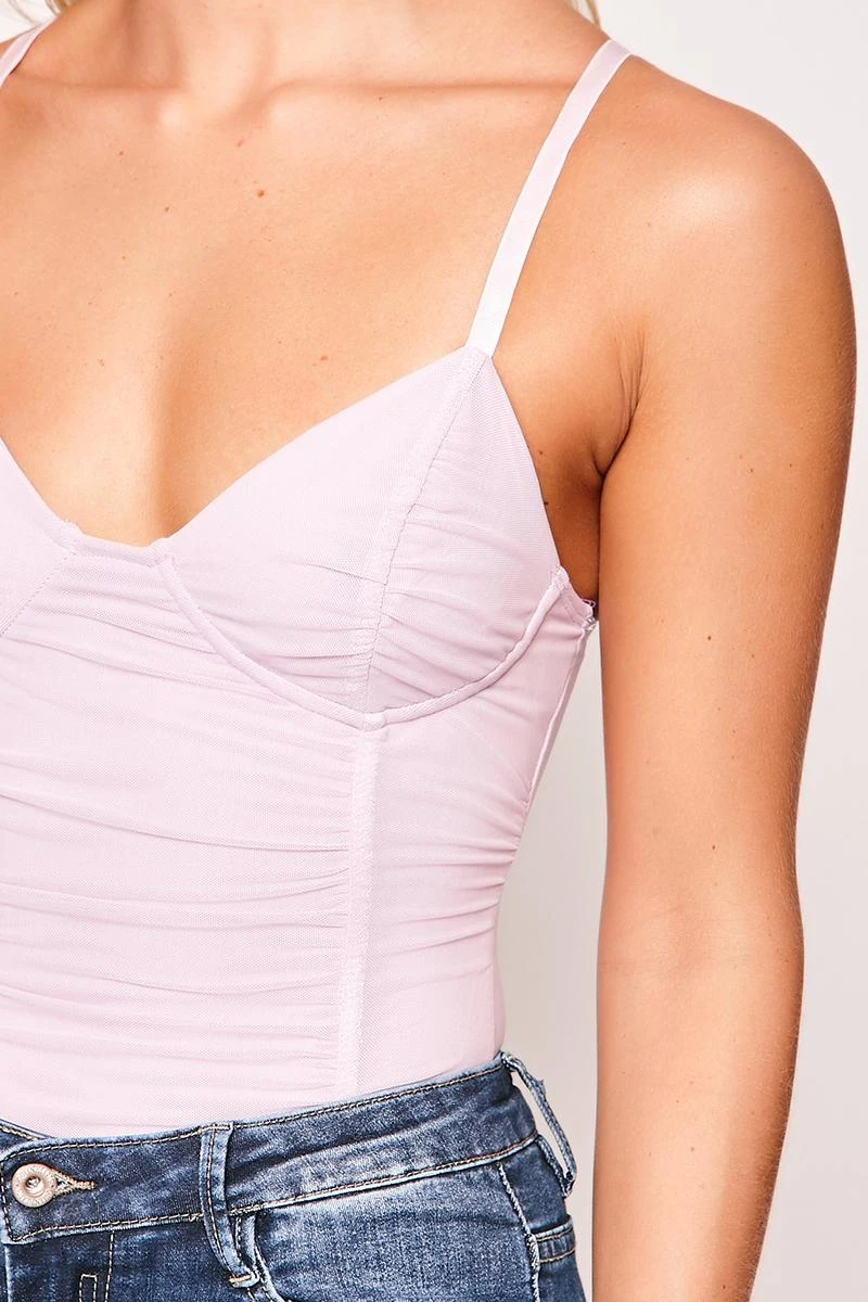 This incredibly flattering bodysuit is the perfect addition to your “jeans & nice top” collection. This strappy bodysuit has an all over ruched affect in a gorgeous lilac tone.