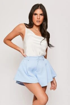 Jess – Blue Premium Ribbed Gold Button Trim Contrast Bodysuit