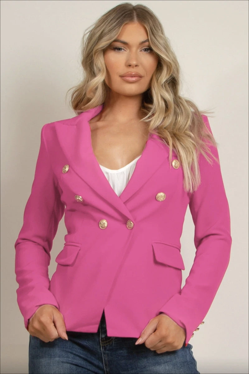 Love Rafal’s warm magenta hue and gold button detailing! You’ll be channeling sophisticated vibes in this oh so chic style!