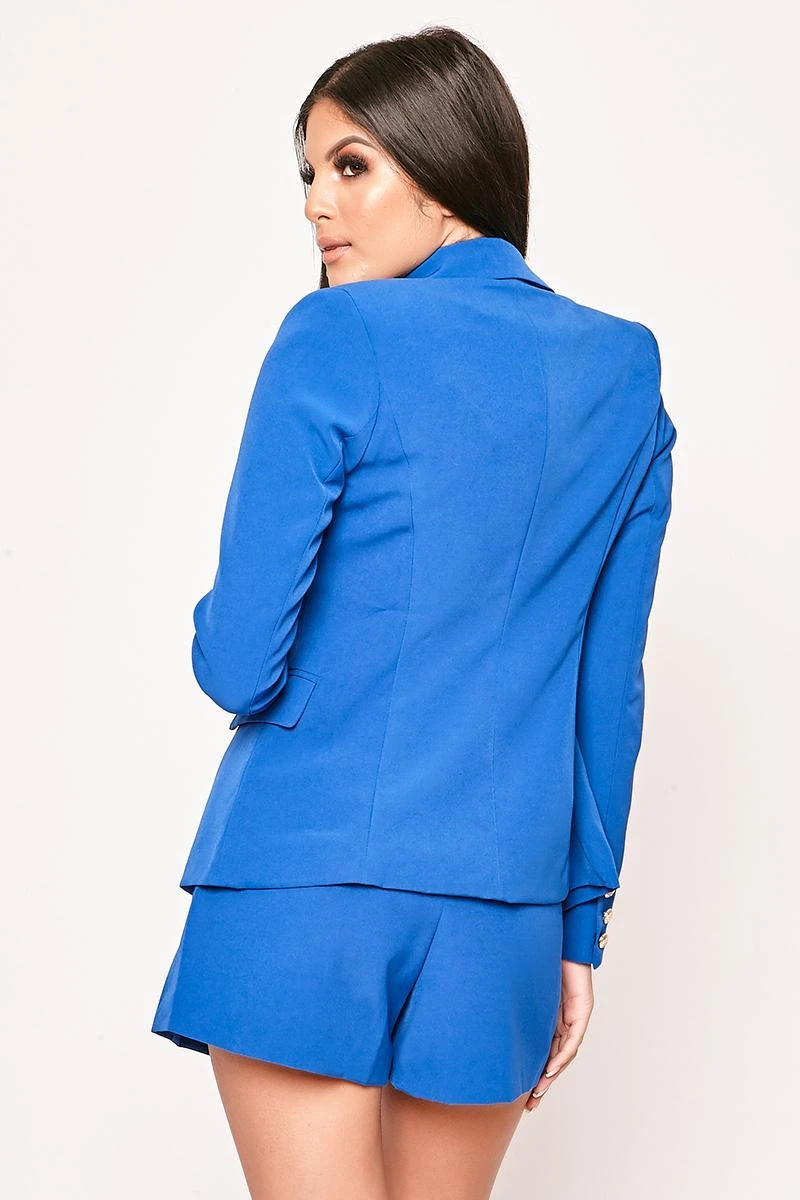 Love Rafal’s luxe royal blue hue and gold button detailing! You’ll be channeling sophisticated vibes in this oh so chic style! Perfect for styling over one of our luxury bandage dresses!